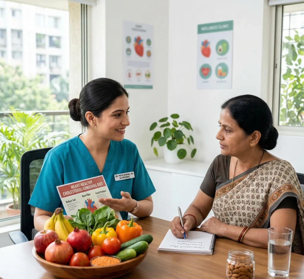 High cholesterol increases the risk of heart-related conditions and requires proper dietary control. Our cholesterol management diet chart focuses on reducing unhealthy fats, improving lipid balance, and supporting heart health through practical food choices and lifestyle guidance.
