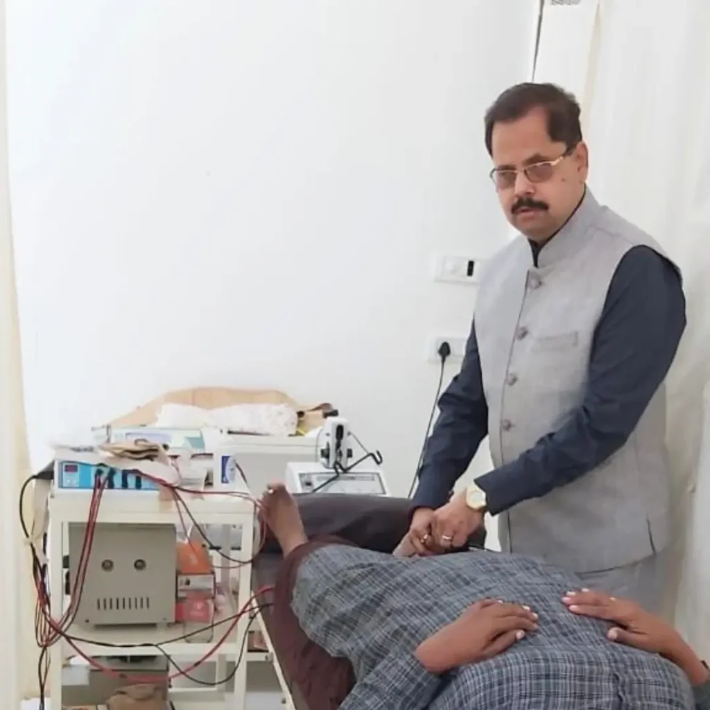 Under the expert guidance of Dr. Nitin Shimpi, physiotherapy at Ashirwad Yog Naturopathy College focuses on healing the body naturally without drugs or surgery. The therapy helps restore body movement, reduce pain, and prevent disabilities caused by injuries or medical conditions using advanced equipment like Electronic Traction, Ultrasound Therapy, Galvanic (IG, SF), Wax Bath, and Steam Bath units.